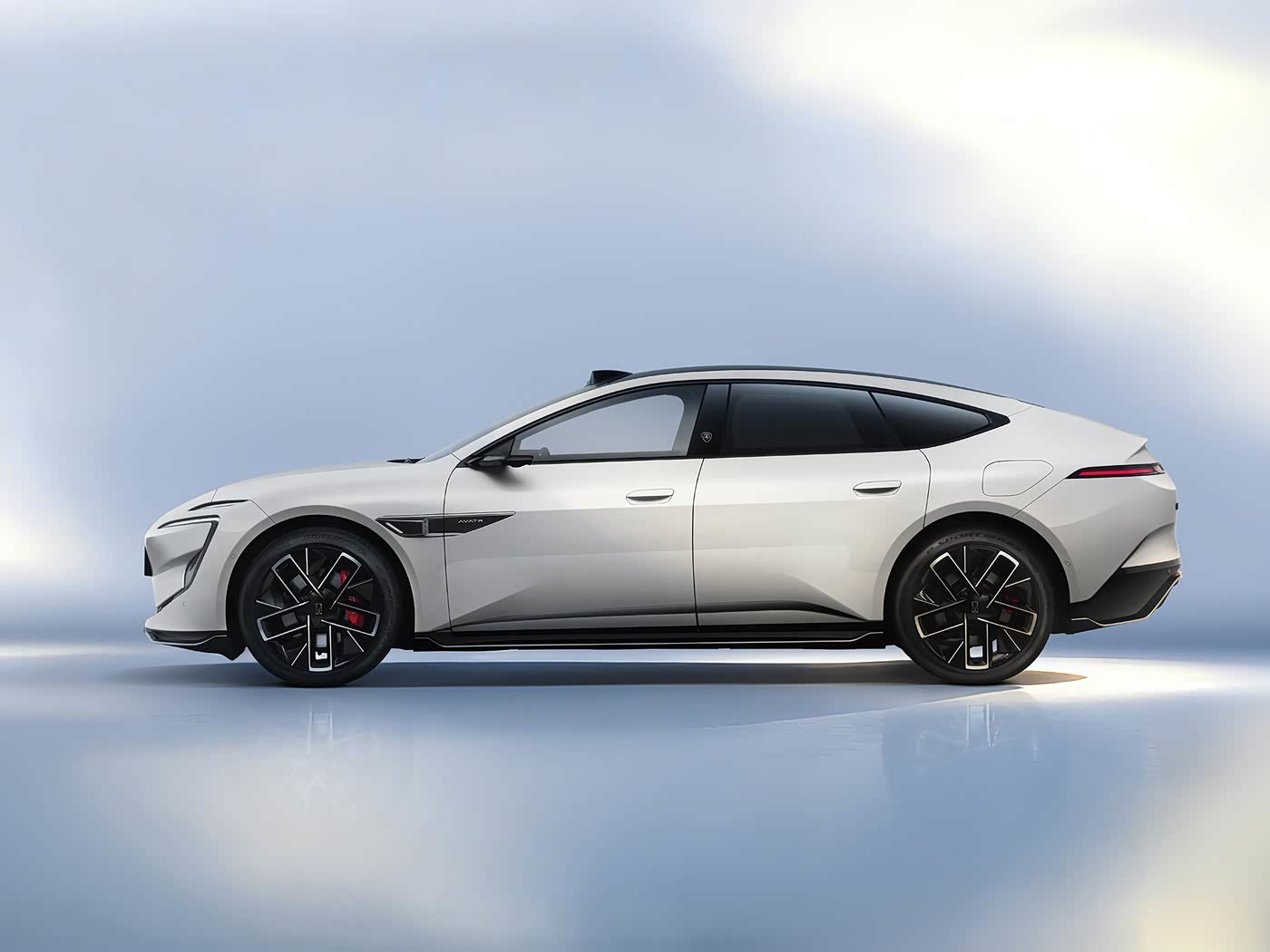 车尾延续了封闭式无后窗的极简设计,搭配可电动升降的隐藏式后扰流板与一字型细长尾灯组,后包围采用扩散器造型装饰板,整体风格既保留了阿维塔独有的未来科技美学,又通过智能化硬件的外显强化了车型的智驾属性。