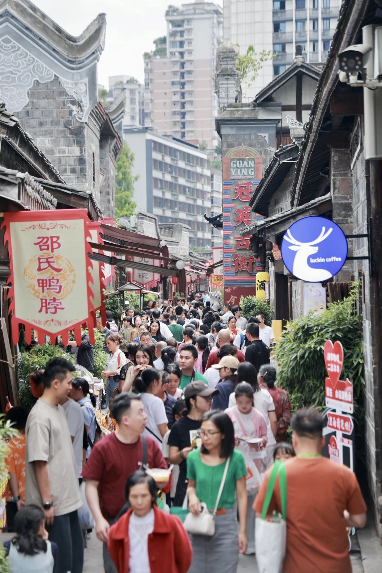 宜宾商业街迎来大批游客打卡消费(叶昌荣 摄)