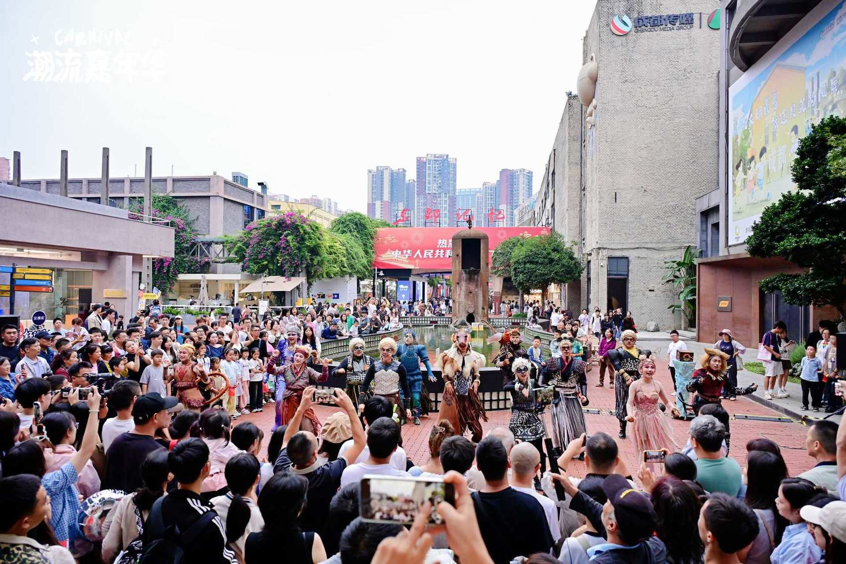国庆中秋期间,成都东郊记忆吸引大量游客前往。图为表演人员与游客互动。(东方正火供图)