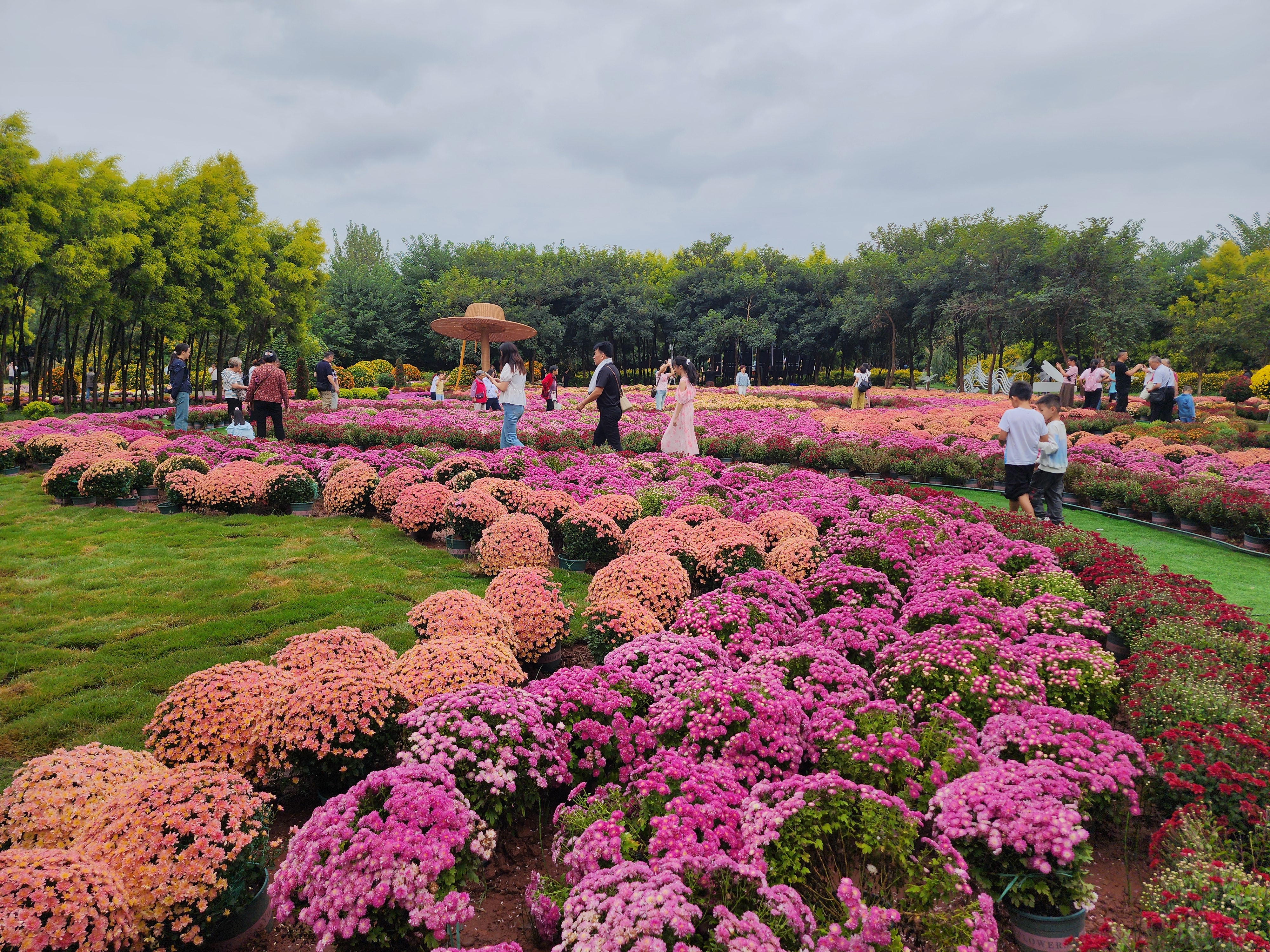 国庆假期,游客在西昌邛海湿地观赏菊展